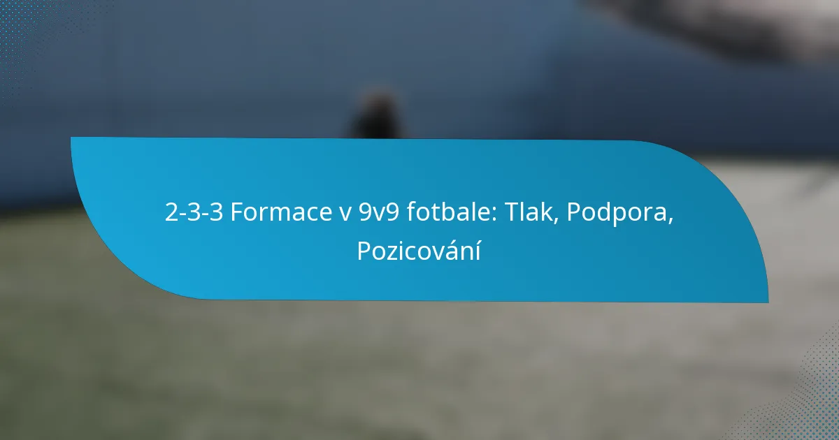 Formace 2-3-3 v 9v9 fotbale je taktická sestava, která zahrnuje dva obránce, tři záložníky a tři útočníky, čímž se dosahuje rovnováhy mezi ofenzivní hrou a kontrolou středu hřiště. Tato formace zdůrazňuje koordinovaný tlak na nositele míče a důležitost okamžité podpory pro opětovné získání míče. Efektivní týmová spolupráce a strategické postavení jsou klíčové, což umožňuje hráčům udržovat plynulost a soudržnost při provádění ofenzivních i defenzivních strategií.